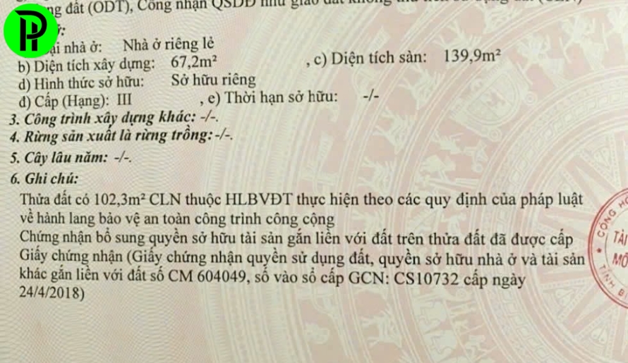 Tình trạng pháp lý: có sồ hồng hoàng công